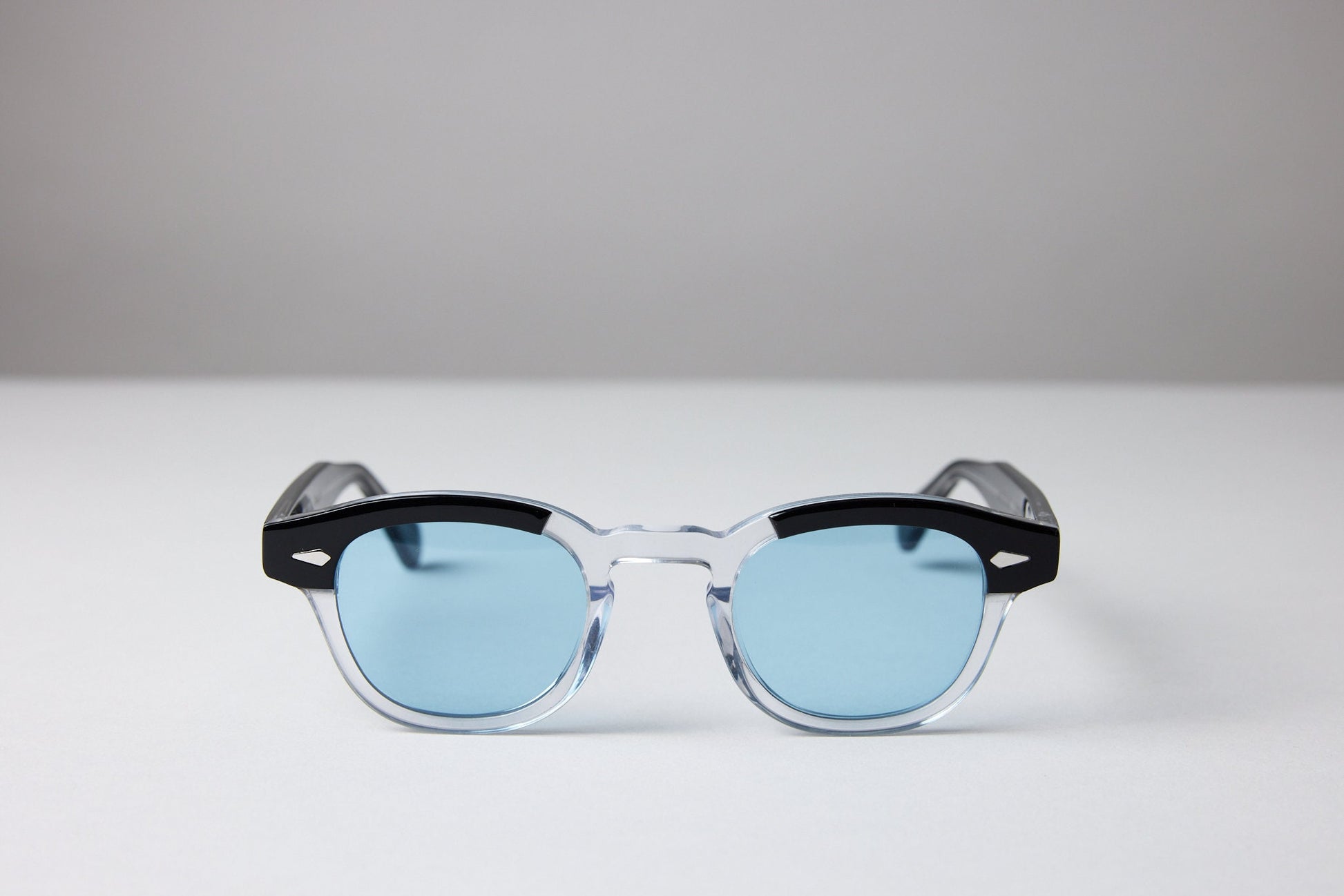 Small - NEW YORK EYERISH, Causeway. Two-tone, Black/Crystal Frame with Baby Blue Lenses.